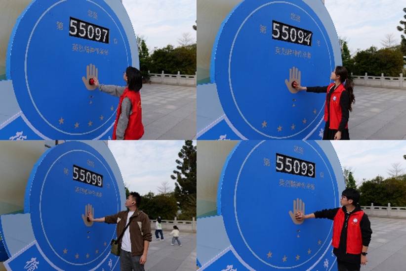 在福州市革命英烈事迹陈列馆内,泛黄的照片、斑驳的勋章与未寄出的家书无声讲述着壮烈往事。活动尾声,党员代表来到英烈精神传承者打卡墙前按下按钮,并在“赓续·2025·清明祭英烈”主题墙前书写追思卡片。